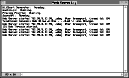 Click "OK" to save the settings. At this point the "Web Server Log" window will open and four Web Server threads will immediately begin running.