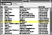 From the "Mail" menu select the "Open Topic Inbox" command. TeleFinder will display a list of topics you subscribe to.The list shows the name of the topic, the source BBS, the date TeleFinder last updated the topic, and the update frequency option.